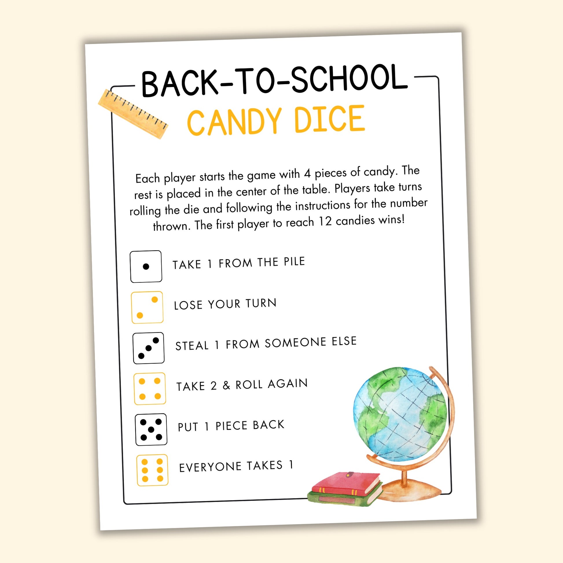 This back-to-school candy dice game would make a great last-minute activity or party game! All you'll need is some candy and a die. Perfect for both kids and adults.