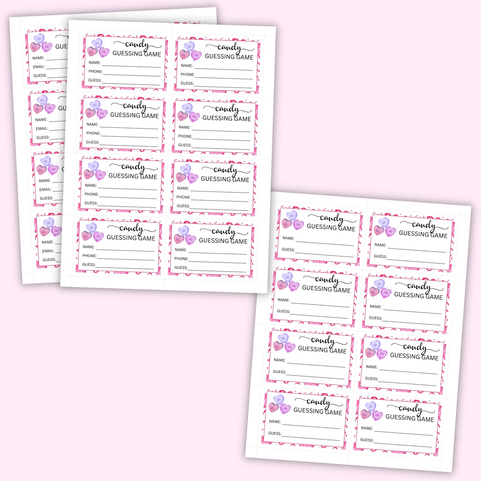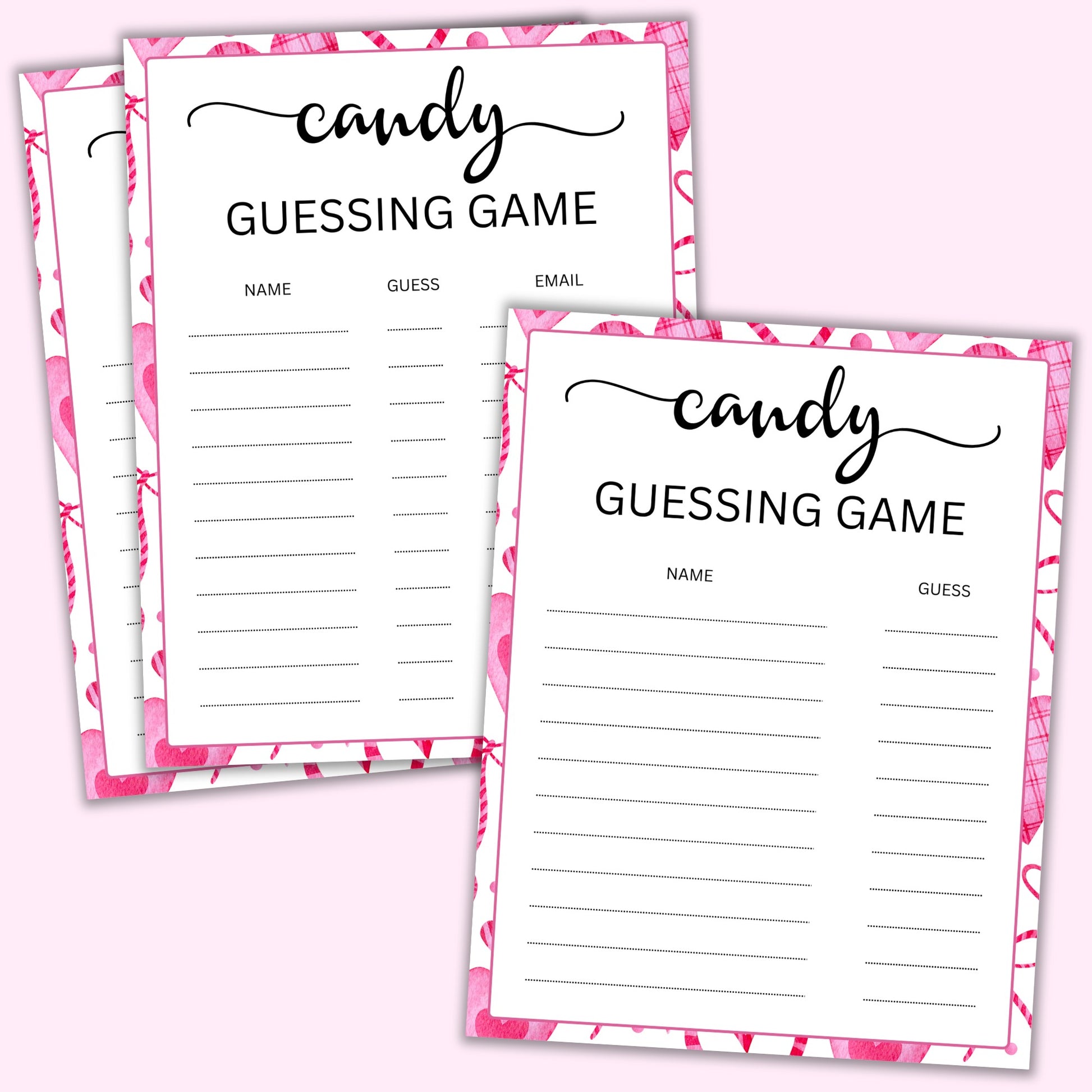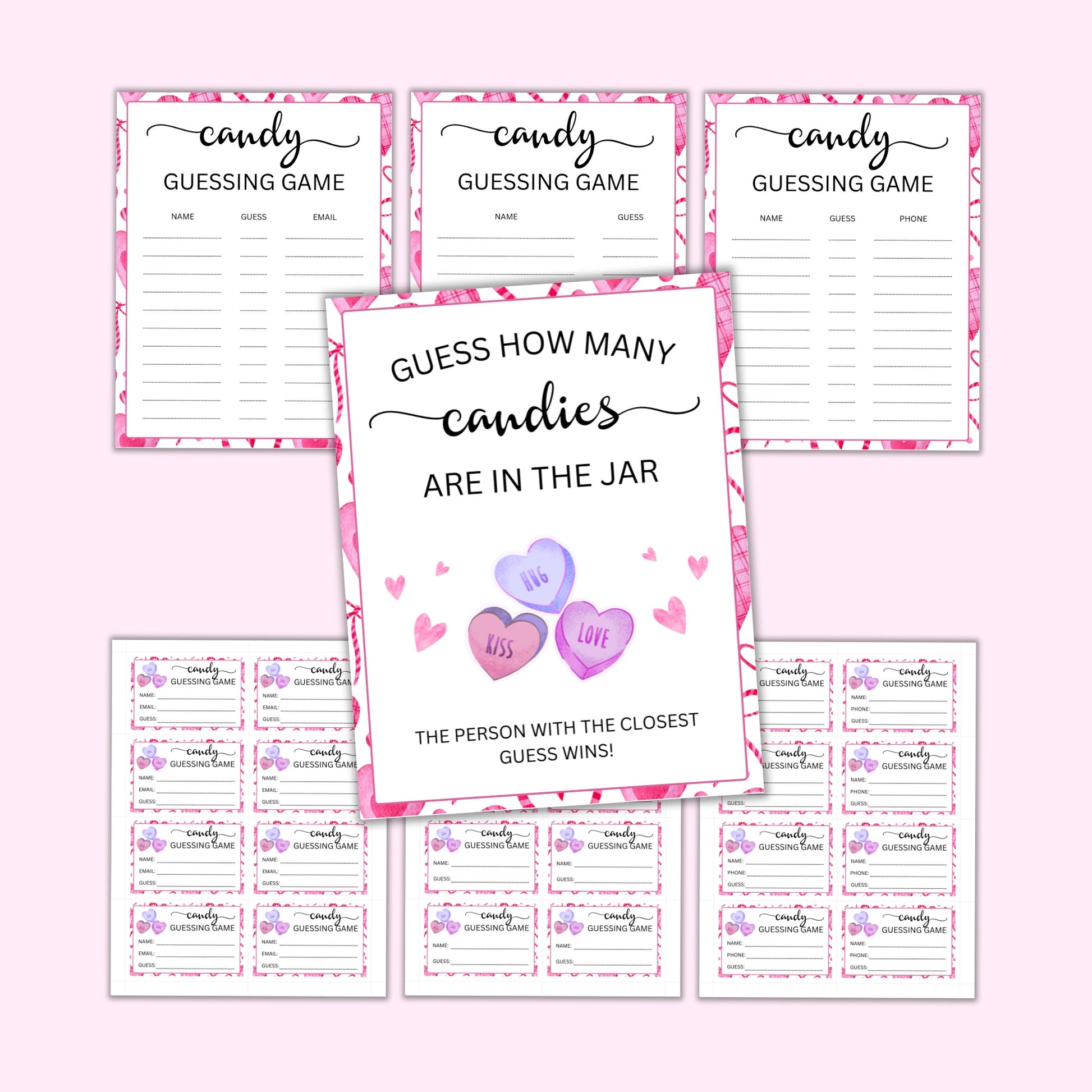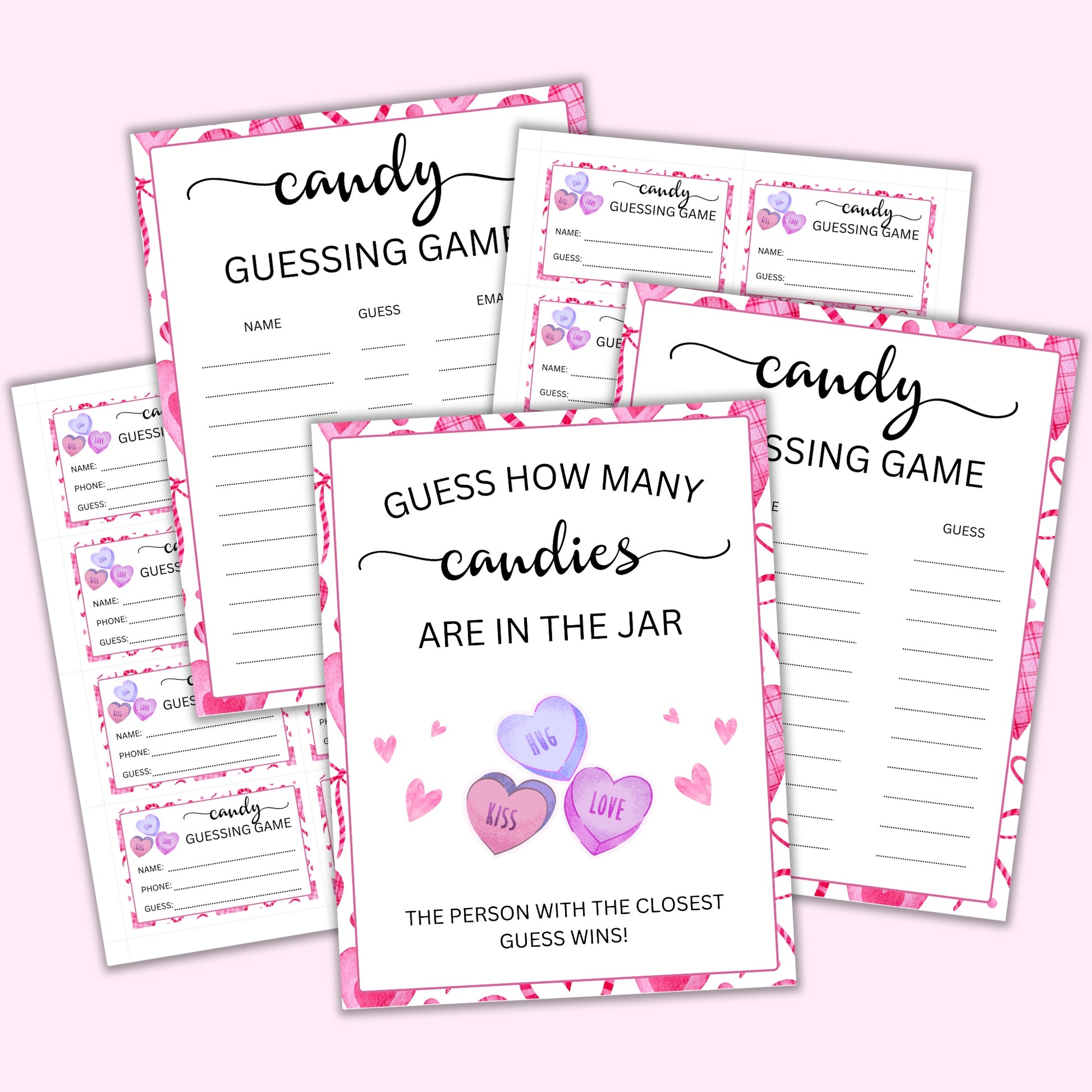 This Valentine's candy guessing game would be a fun addition to your next Valentine's Day party or classroom party! Fill a jar with heart-shaped candy and have everyone guess the number of candies inside the jar. Closest guess wins the jar (or another prize of your choice).
