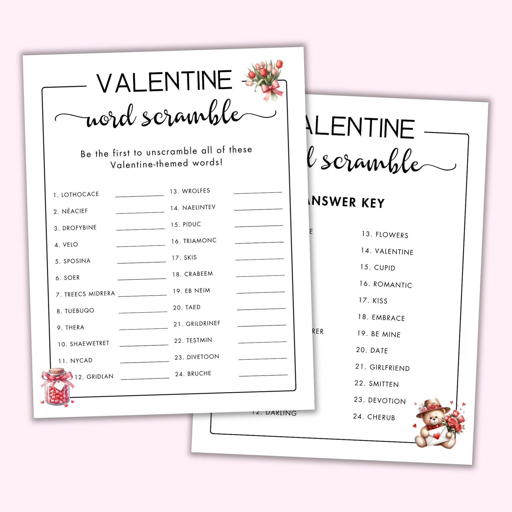 This printable Valentine's Day word scramble would make a great last-minute activity for classrooms, office parties or get-togethers. Print out a sheet for each player (or team of players) and try to unscramble all the Valentine-themed words before the other players. First one to unscramble all of the words wins!