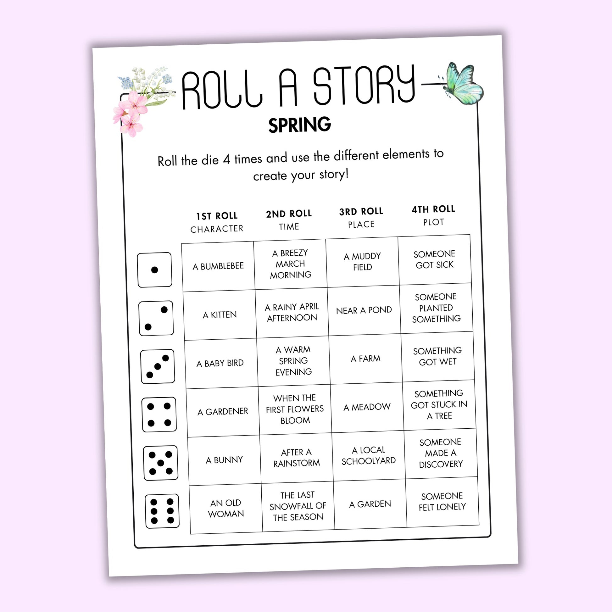 This spring writing prompt game would make a great classroom activity or party game! All you'll need to create your story is a die, some paper and something to write with.